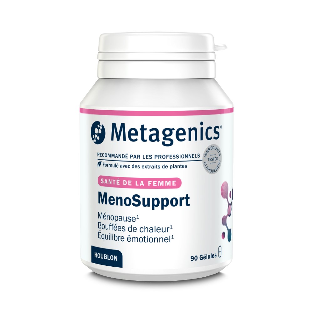 MenoSupport contains a hop extract, rich in hopene, which helps with hot flashes, sweating, and mood swings during menopause, and promotes sleep.